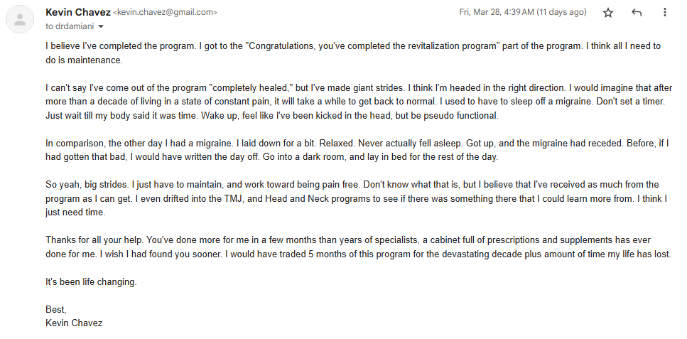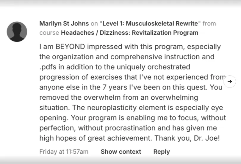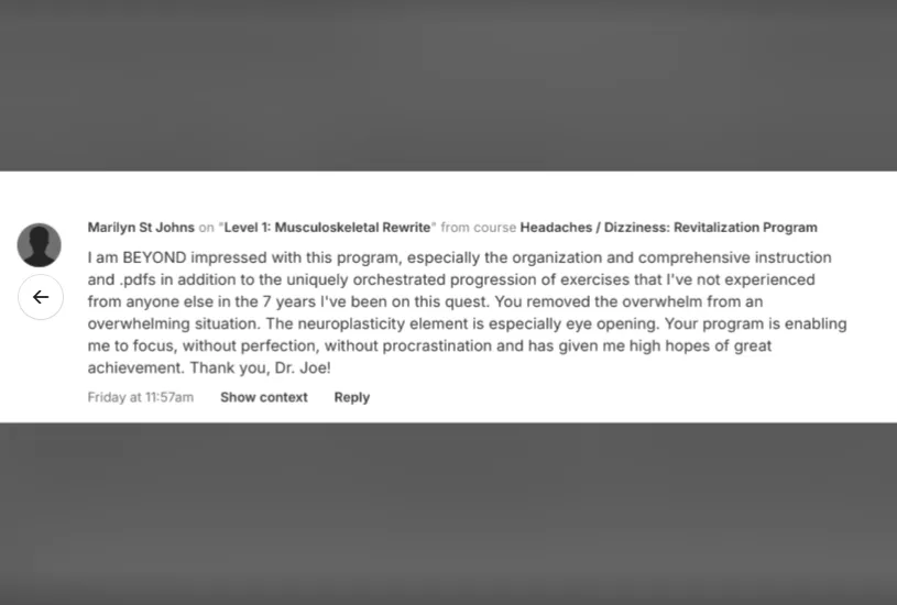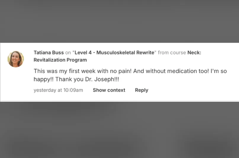 This is the same method I used to break my own pain loop and help over a thousand patients. Whether it's TMJ, headaches, neck stiffness, or dizziness, this program gives you the roadmap you need to break free!