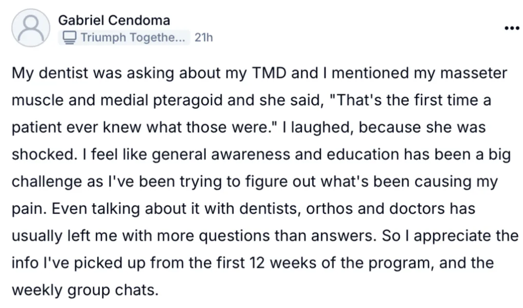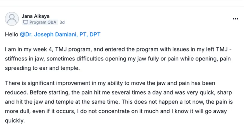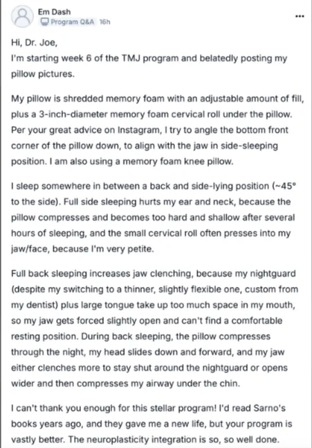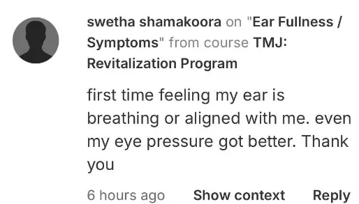 "My symptoms are complicated so will this really work for me?" The program is designed for people with multiple overlapping symptoms (TMJ, neck pain, headaches, dizziness, ear pressure). That's exactly who it's built for. And if something feels off or you're not progressing, you can ask me directly in the weekly Q&A calls.