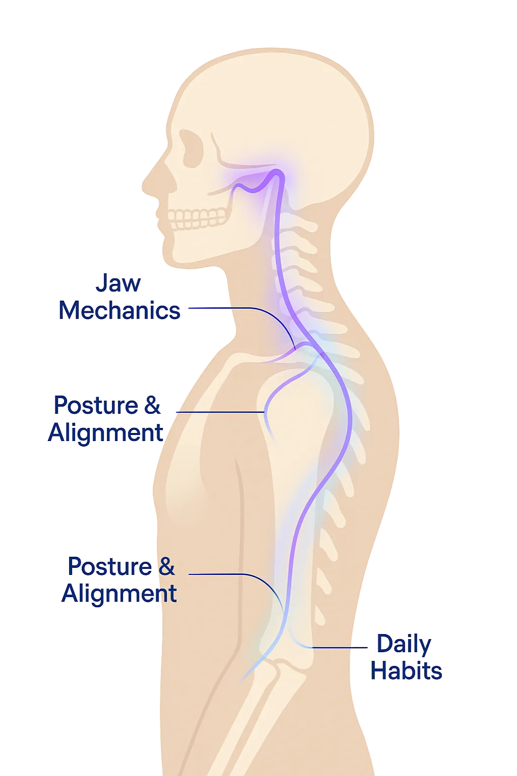 Your jaw tension isn't just a jaw problem. Your headaches aren't just about tight muscles. And your neck stiffness isn't solved by another adjustment.