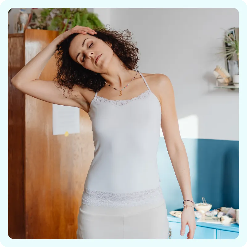 The program addresses TMJ, neck pain, headaches, and dizziness together as one connected system instead of making you figure out which exercises to do for which symptom!